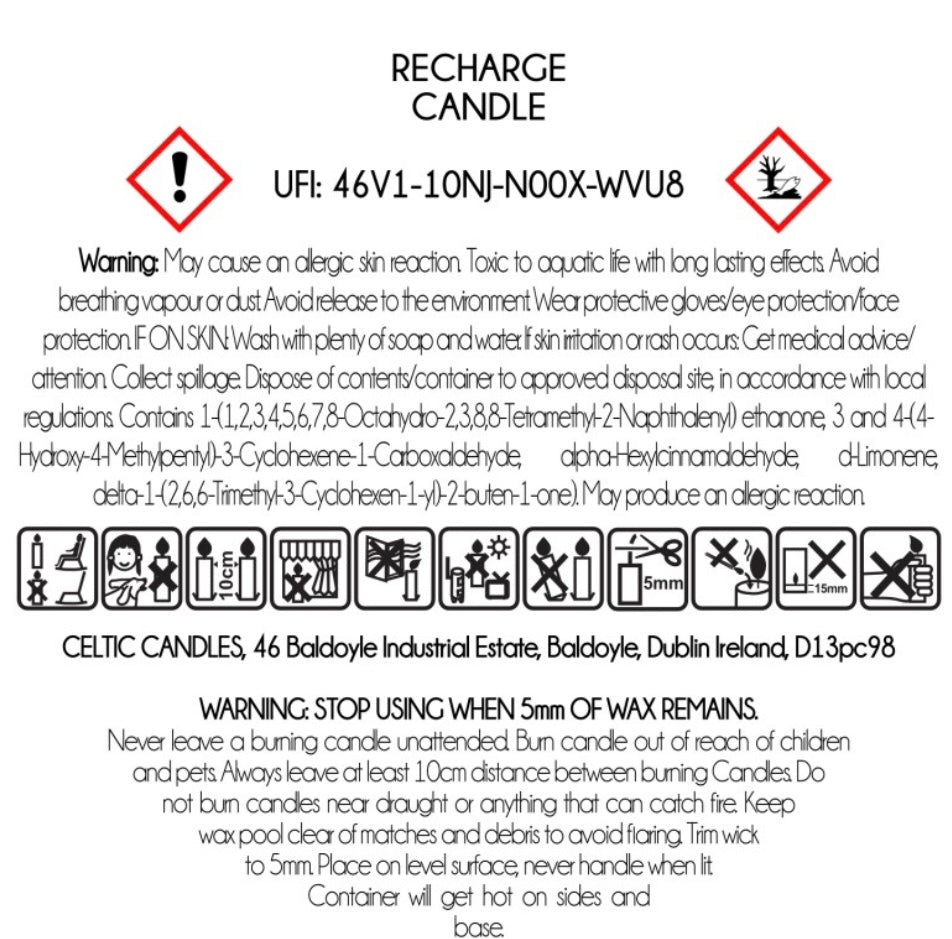 The Recharge scent, with its invigorating blend of citrus and herbs, will help awaken the senses and stimulate the mind. Simply light the candle, sit back, and let the refreshing scent transport you to a place of renewed energy and motivation.